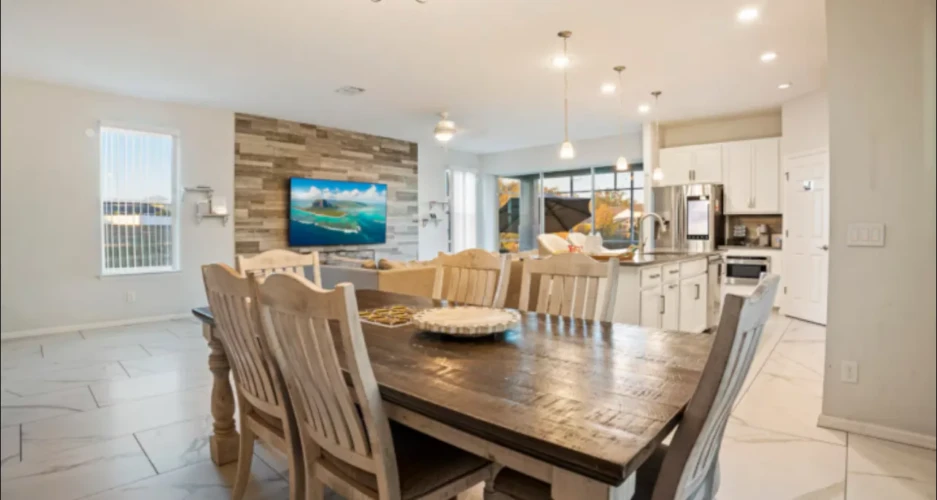 Skip the big brands—stay somewhere that genuinely cares. At Costa ChampionsGate, our family pours love and pride into every detail of this 4BR Disney-area retreat. Relax in your private jacuzzi under the stars, enjoy dreamy lighting, and gather for a gourmet BBQ night. Inside, unwind in spa-inspired baths, plush king beds, and a dedicated office for work-life balance. Just minutes from Disney, yet peaceful with full resort access. From our family to yours— welcome home. No additional fees.