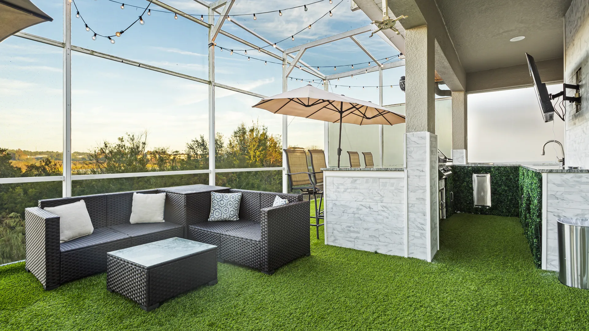 - Luxury Features: Outdoor gourmet kitchen, jacuzzi, and cozy spaces.