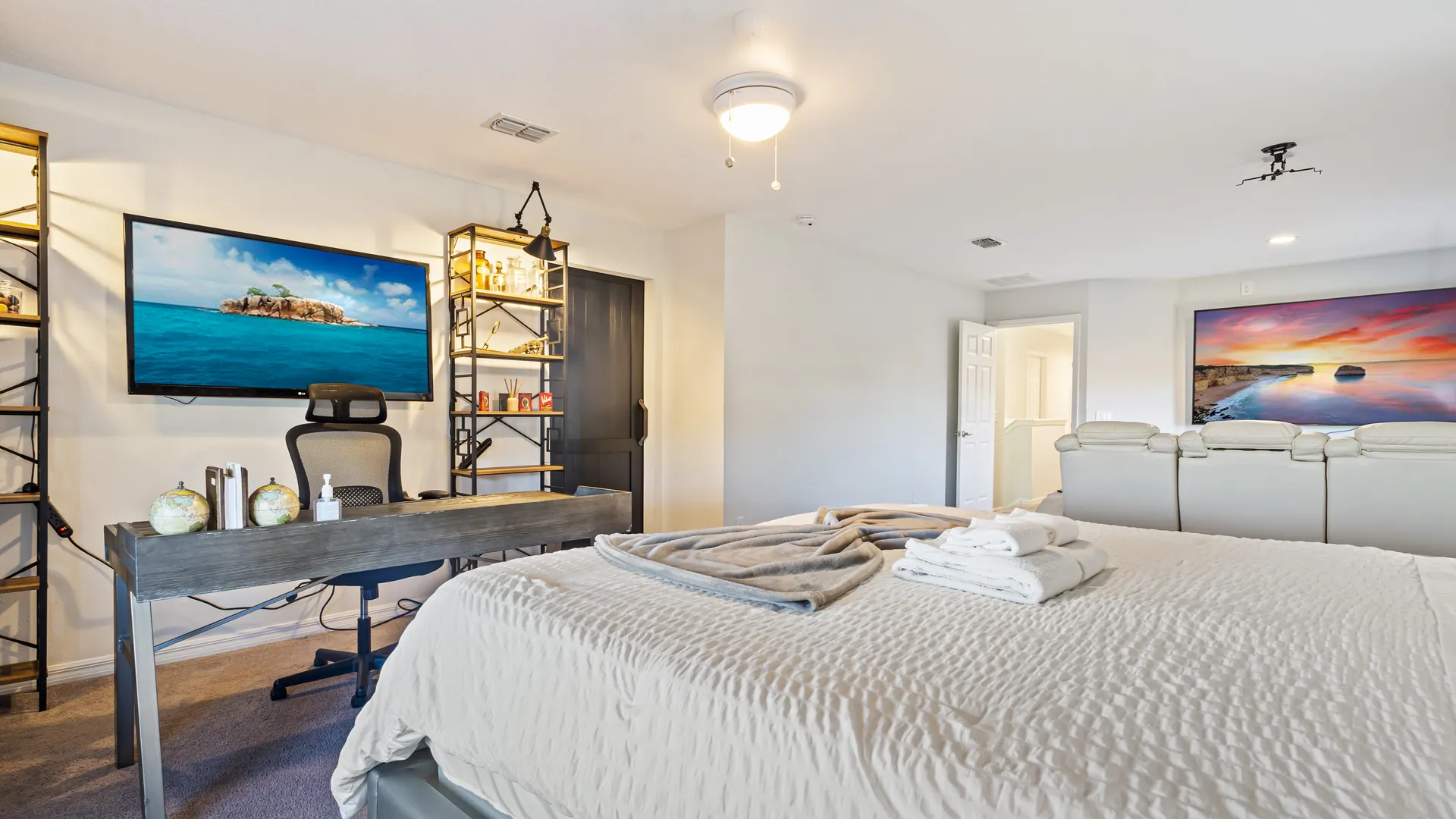 - Master Suite: Spacious with TV lounge, PlayStation 5, and a $12k smart mattress.